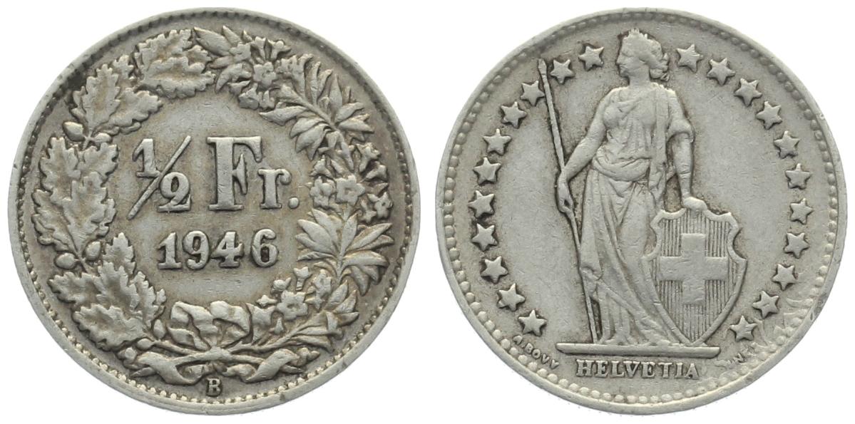 1/2 Franken Stehende Helvetia Fehlprägung Gleichstehend