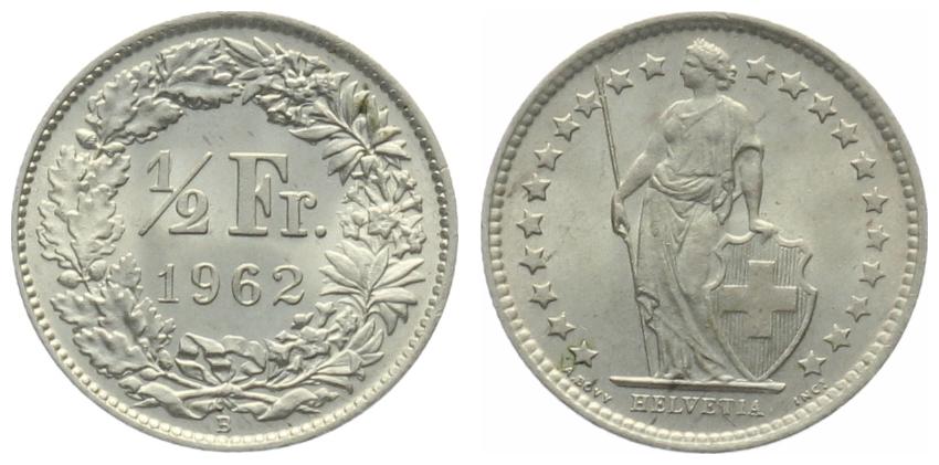1/2 Franken 1962 B - fast stempelglanz