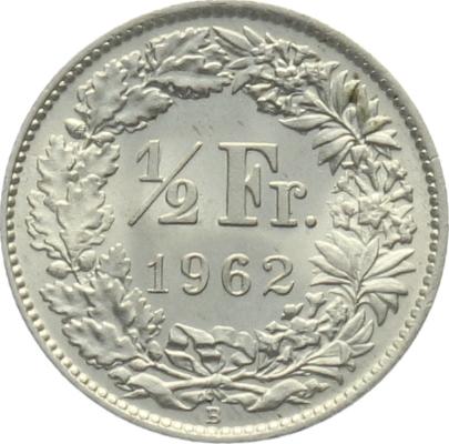 Mobile Preview: 1/2 Franken 1962 B - fast stempelglanz