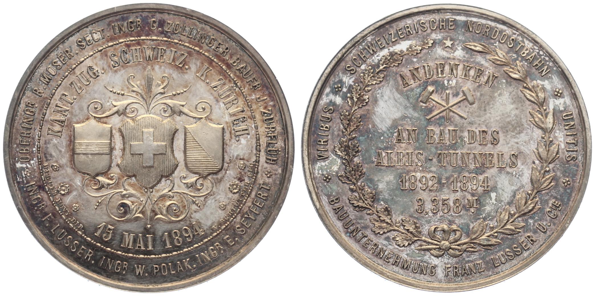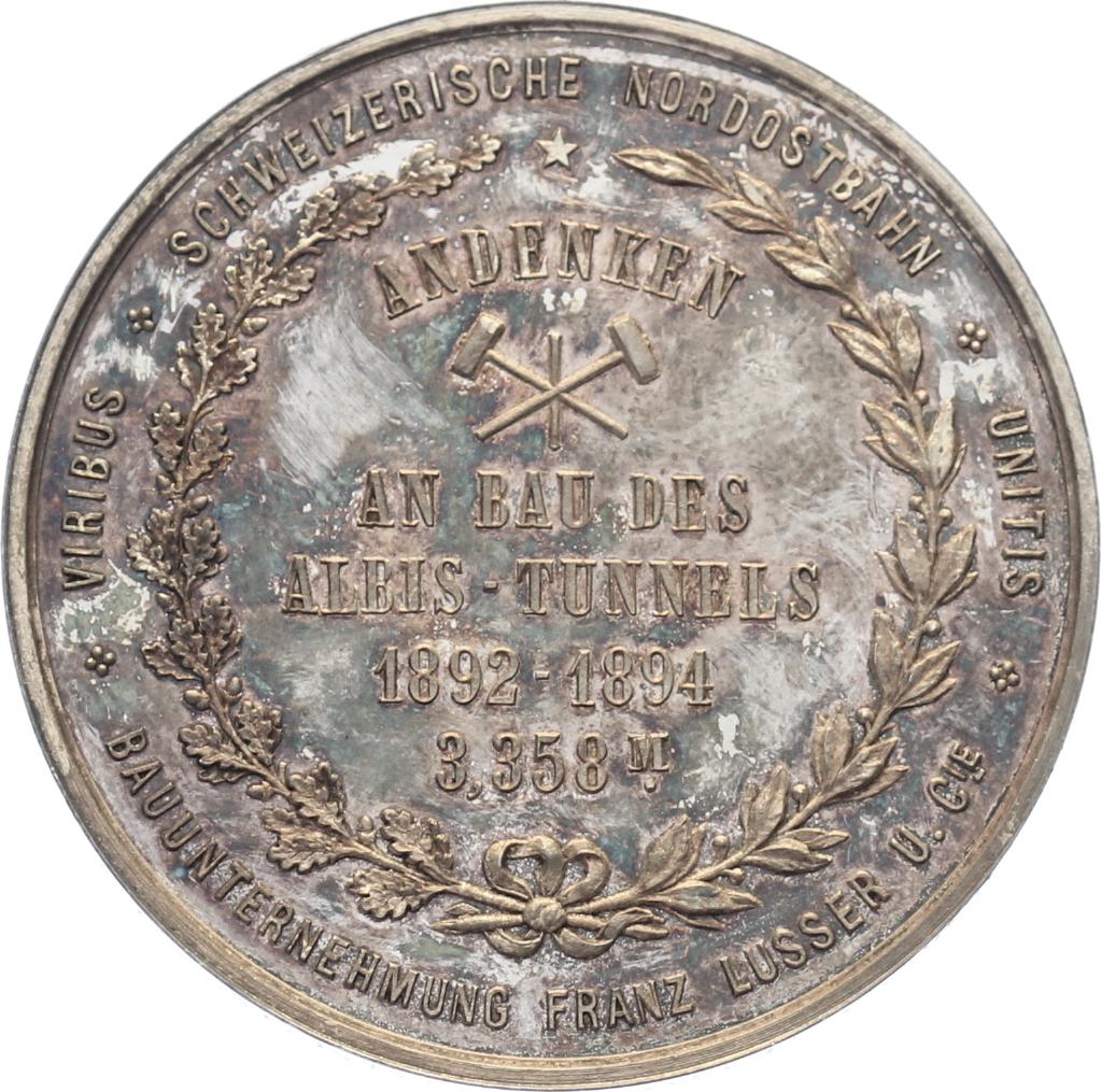1894 Silbermedaille zur Einweihung des Albistunnels Zug - Zürich