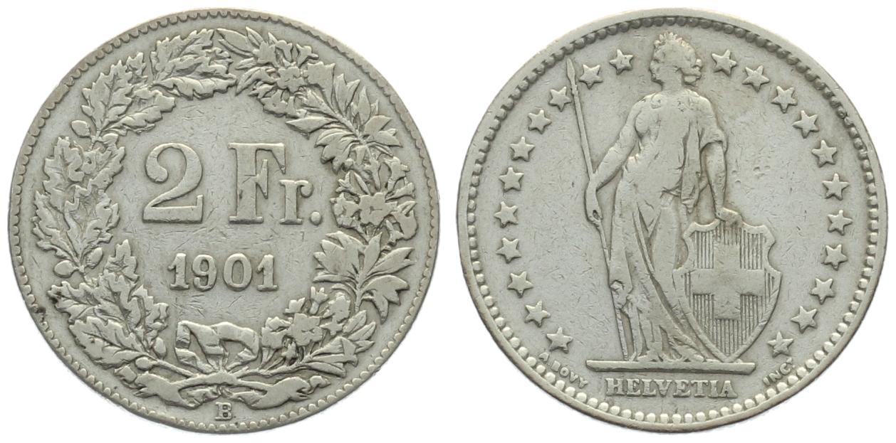 2 Franken 1901 B - seltener Jahrgang