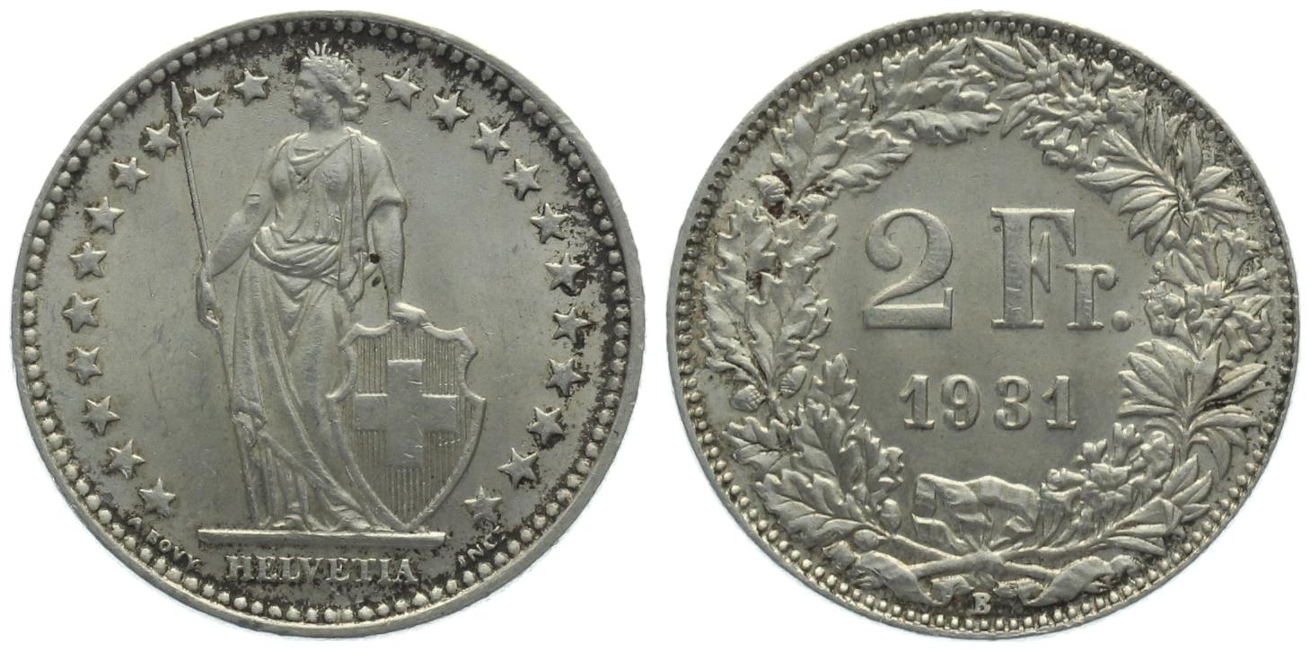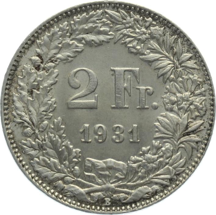 Preview: 2 Franken 1931 B - fast stempelglanz