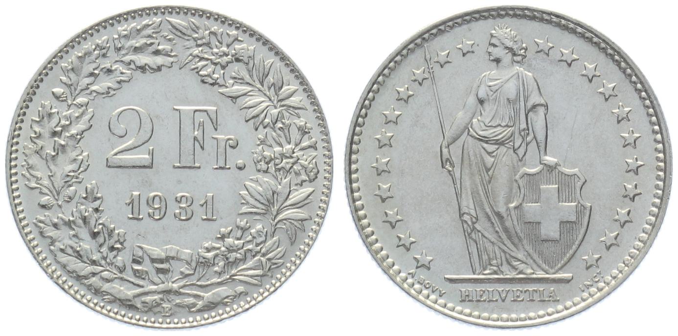 2 Franken 1931 B - vorzüglich bis unzirkuliert