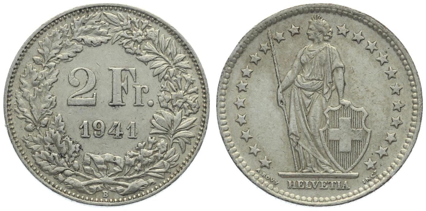 Preview: 2 Franken 1941 B - fast vorzüglich