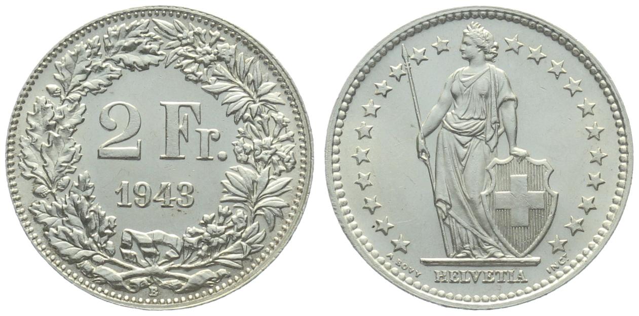 2 Franken 1943 B - fast stempelglanz