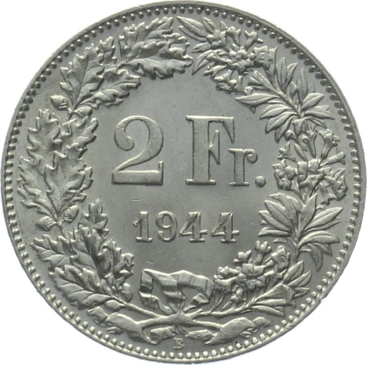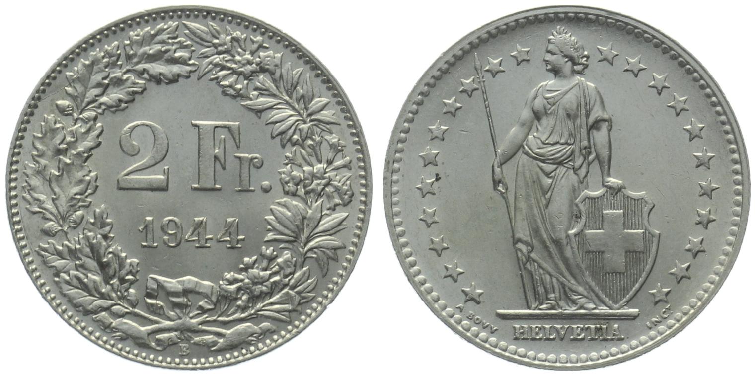 2 Franken 1944 B - Prachtstück, fast stempelglanz