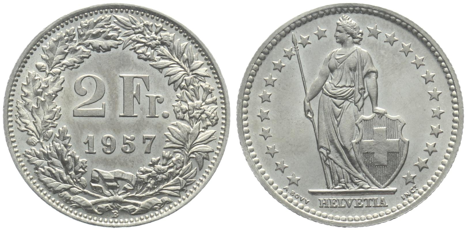 Preview: 2 Franken 1957 B - fast stempelglanz