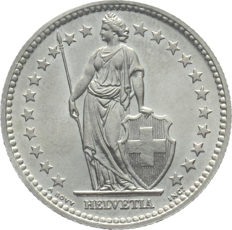 Mobile Preview: 2 Franken 1957 B - fast stempelglanz