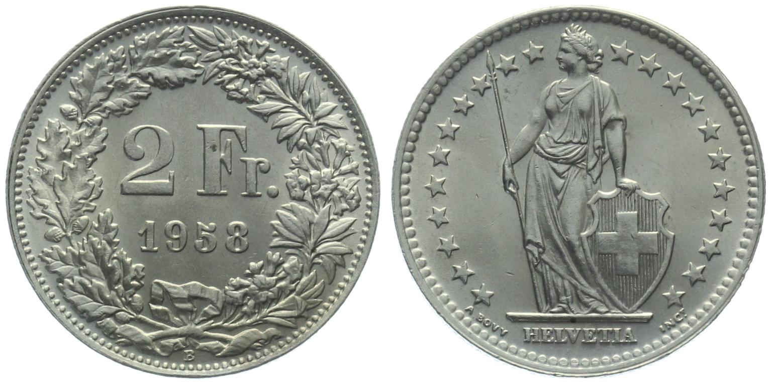 2 Franken 1958 B - fast unzirkuliert