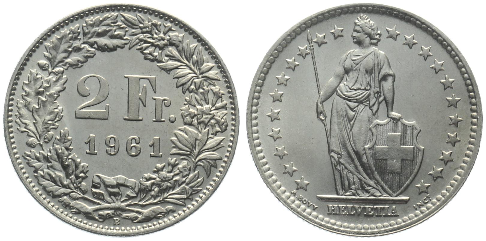 Preview: 2 Franken 1961 B - fast stempelglanz