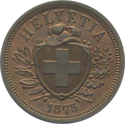 Preview: 2 Rappen 1875 B - fast stempelglanz