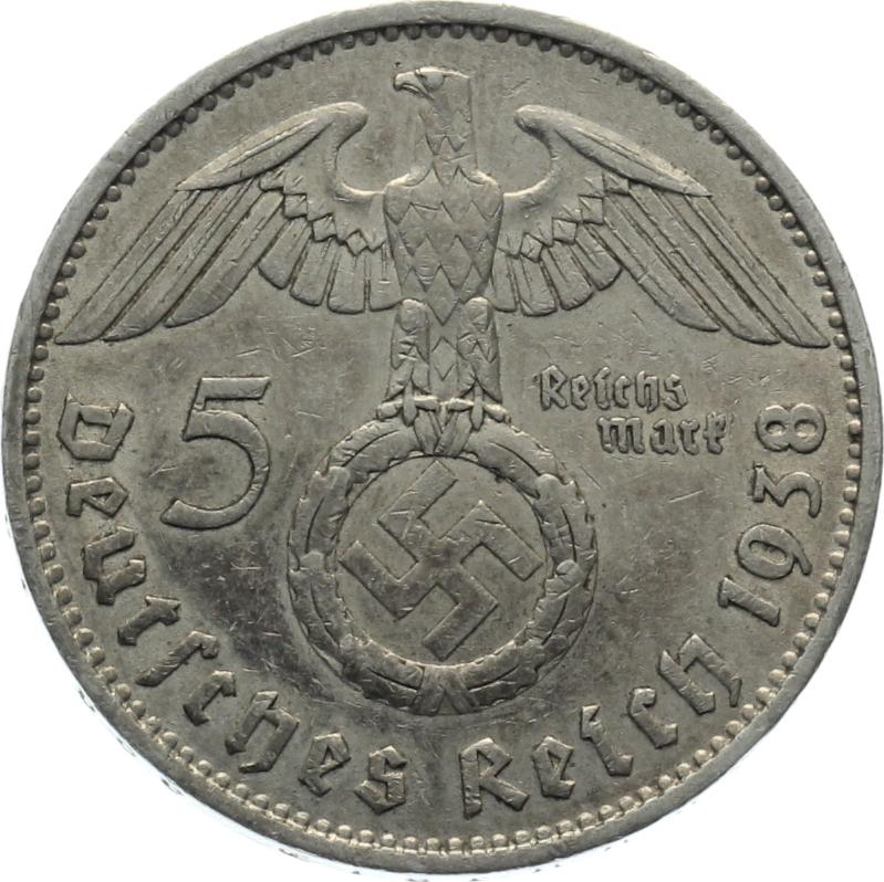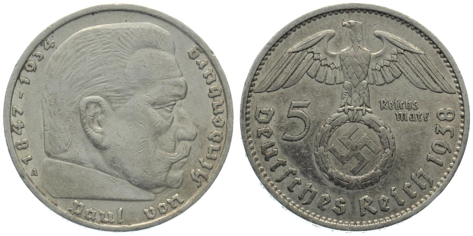 3. Reich 5 Mark 1938 A - Adler über Hakenkreuz