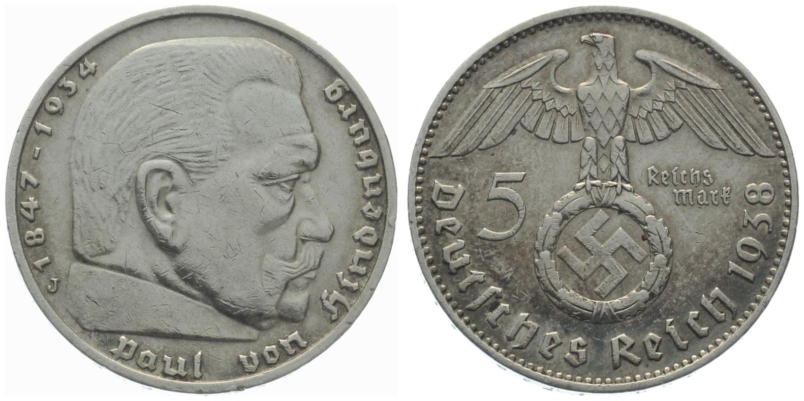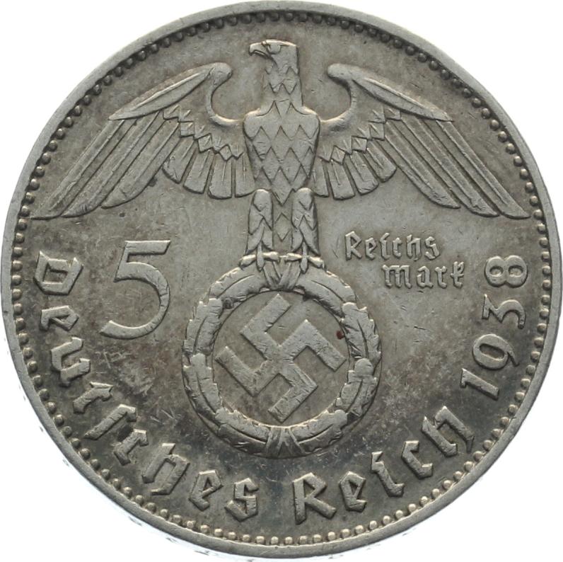 3. Reich 5 Mark 1938 J - Adler über Hakenkreuz