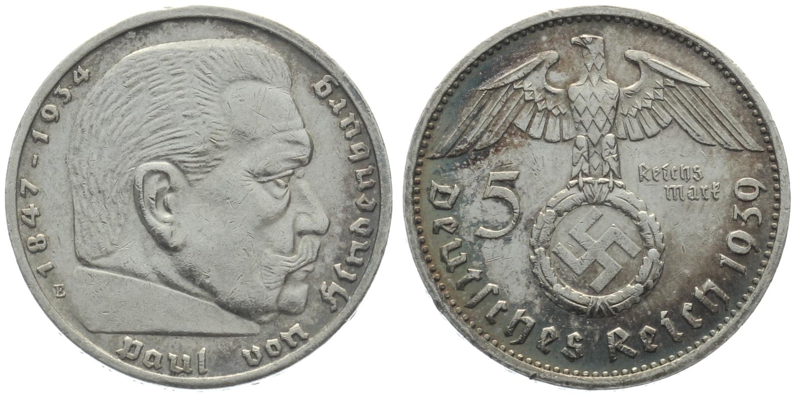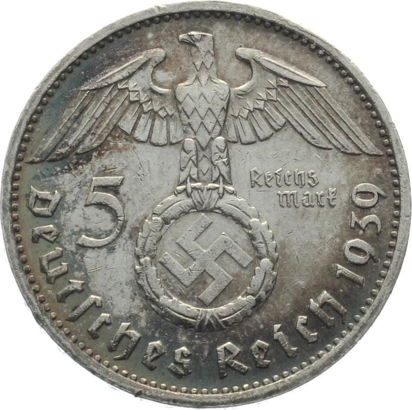3. Reich 5 Mark 1939 E - Adler über Hakenkreuz