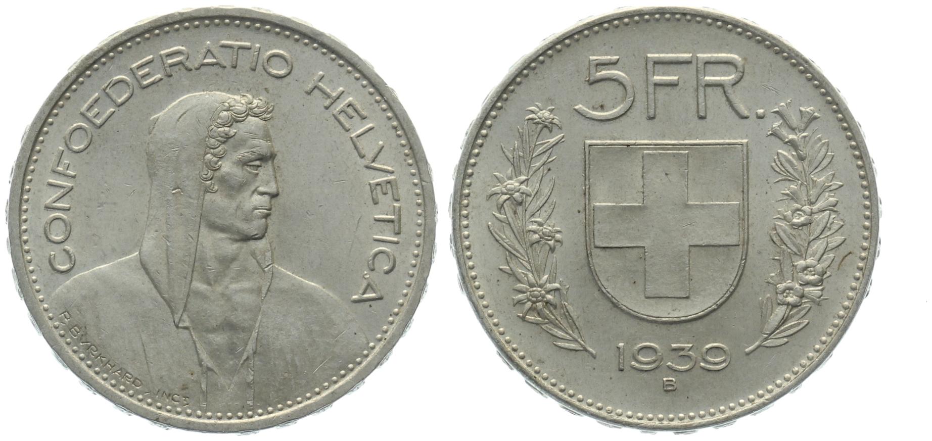 5 Franken 1939 B - vorzüglich