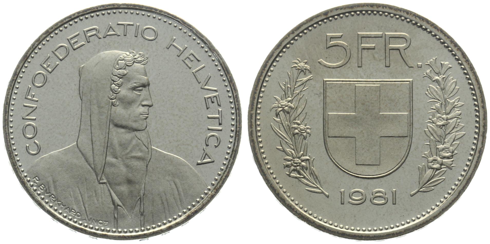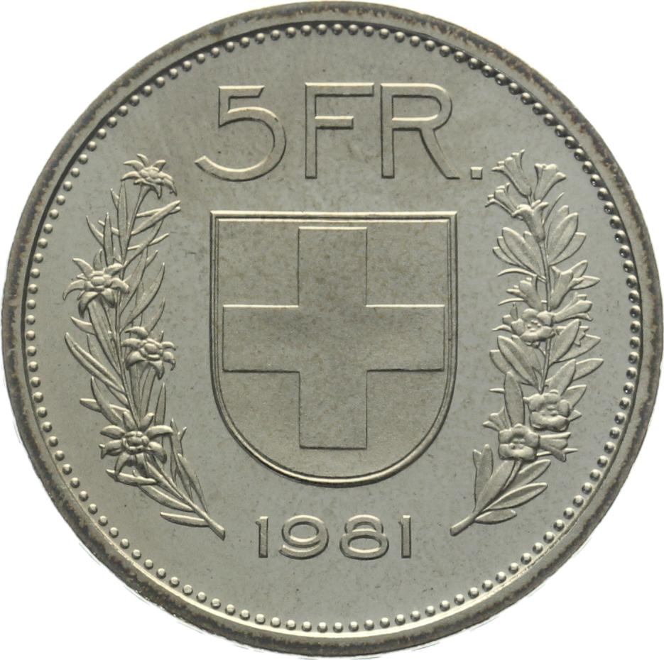 Preview: 5 Franken 1981 ohne Münzzeichen