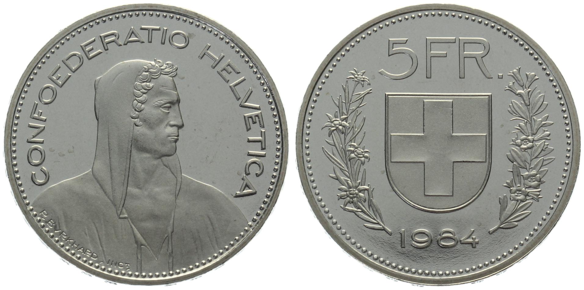 Preview: 5 Franken 1984 ohne Münzzeichen
