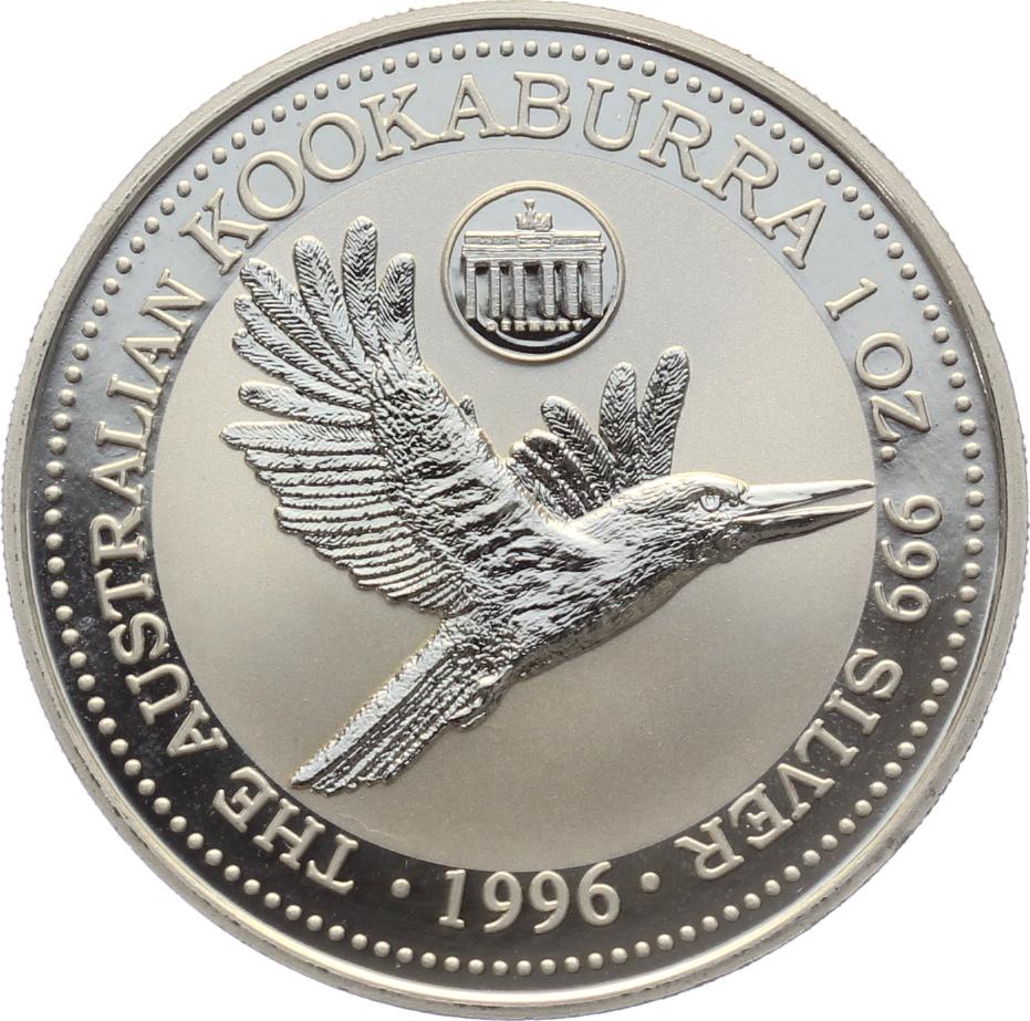 Mobile Preview: Australien 1 Dollar 1996 Kookaburra - 1 Unze Feinsilber - Privymark "Germany"