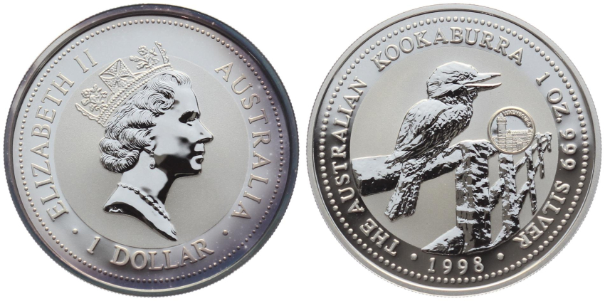 Australien 1 Dollar 1998 Kookaburra - 1 Unze Feinsilber - Privymark "Luxembourg"