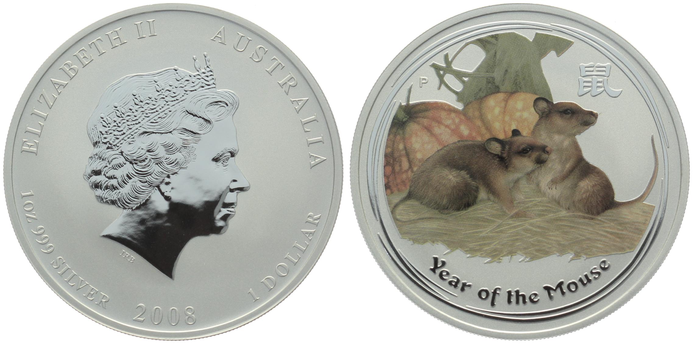 Australien 1 Dollar 2008 Maus - 1 Unze Feinsilber - coloriert