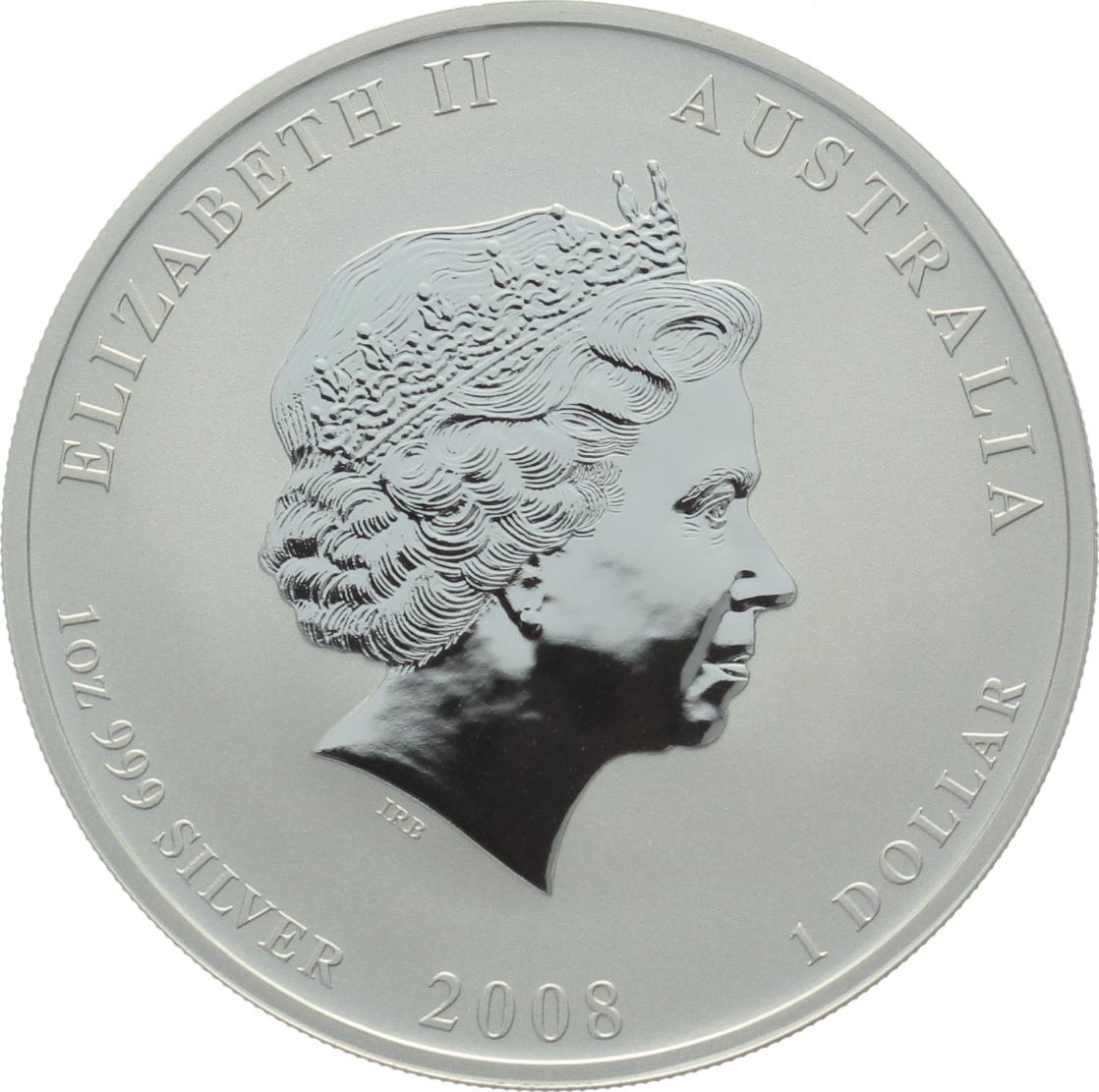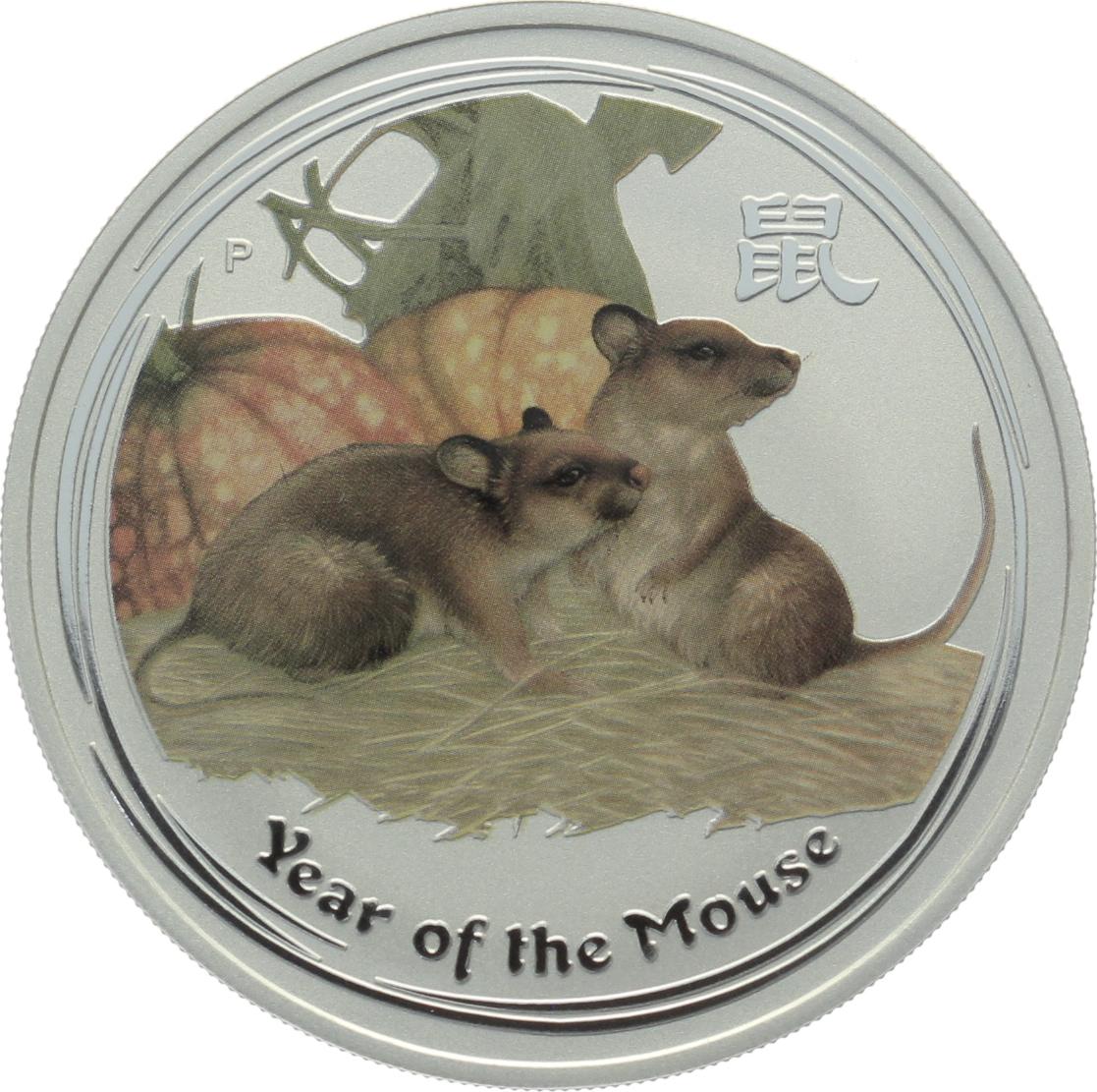Mobile Preview: Australien 1 Dollar 2008 Maus - 1 Unze Feinsilber - coloriert
