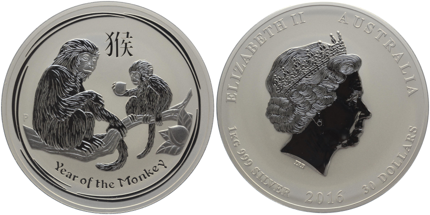 Australien 30 Dollars 2016 Year Of The Monkey - 1 kg Feinsilber