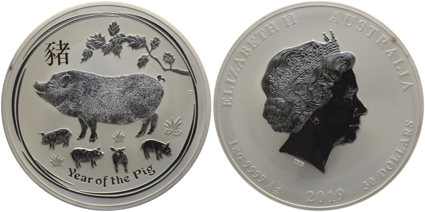 Australien 30 Dollars 2019 Year Of The Pig - 1 kg Feinsilber