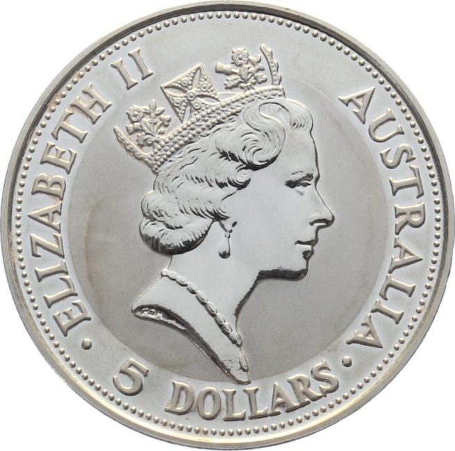 Australien 5 Dollar 1991 Kookaburra - 1 Unze Feinsilber