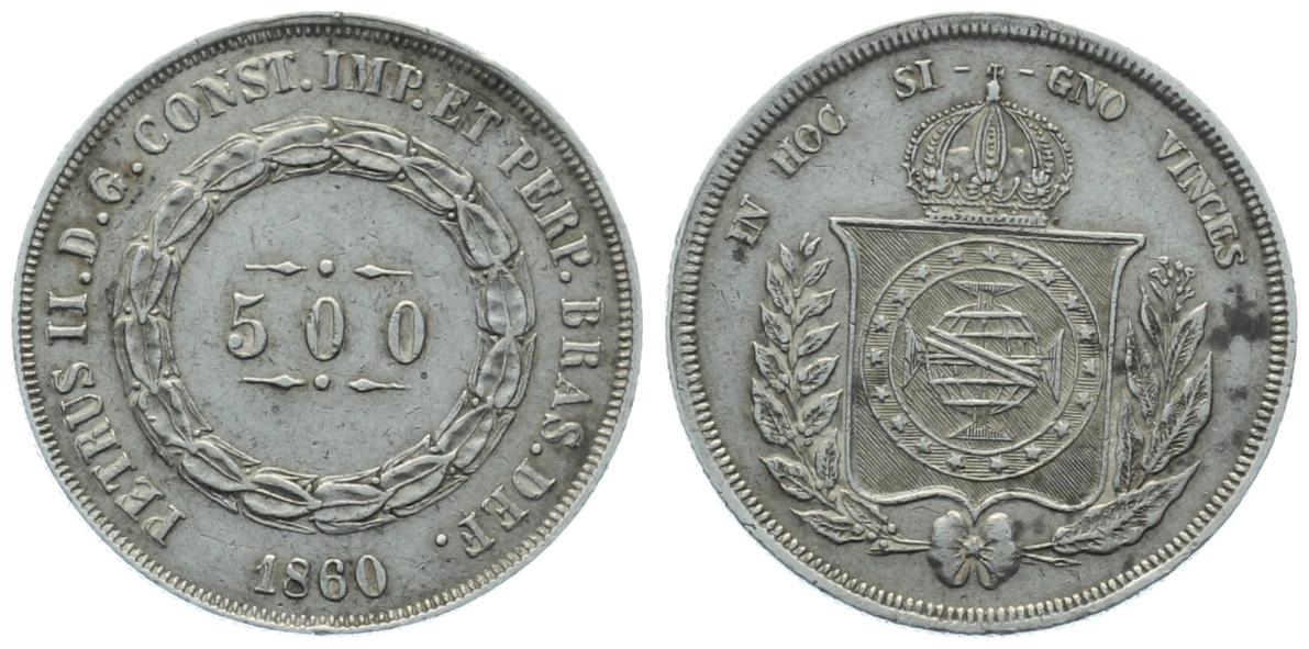 Mobile Preview: Brasilien 500 Reis 1860 - Pedro II.