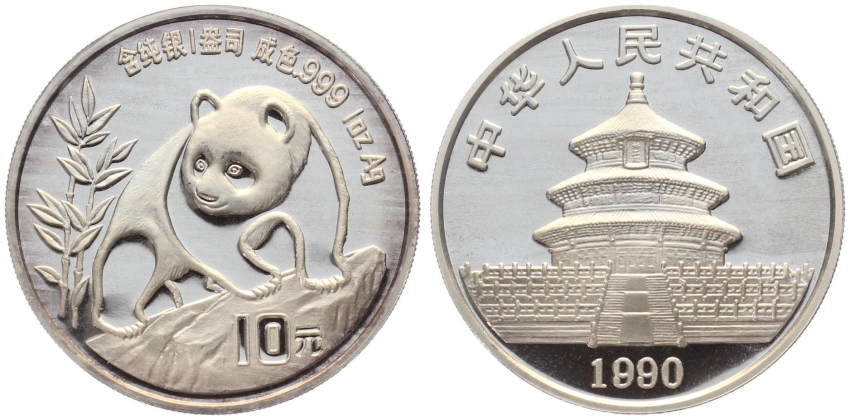 China 10 Yuan 1990 Silber Panda - 1 Unze Feinsilber