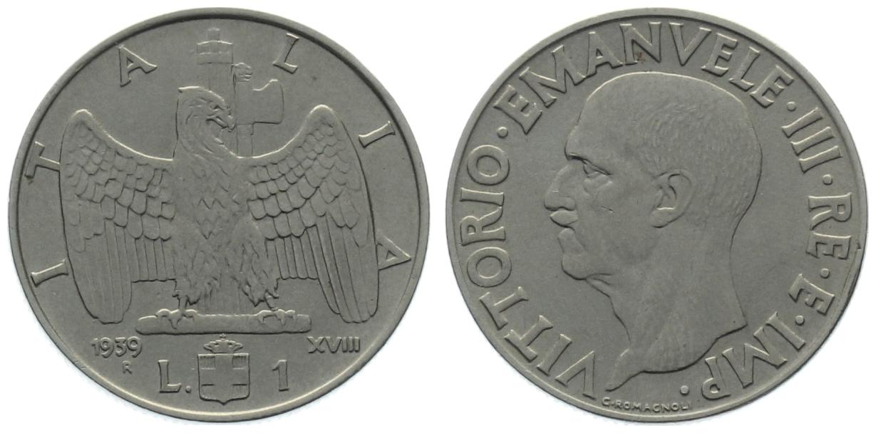 Mobile Preview: Italien 1 Lira 1939 - XVIII.