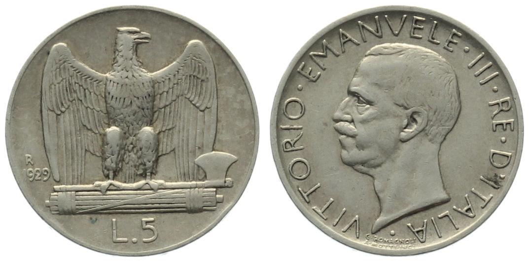 Italien 5 Lire 1929 - Vittorio Emanuele III. 1900-1946