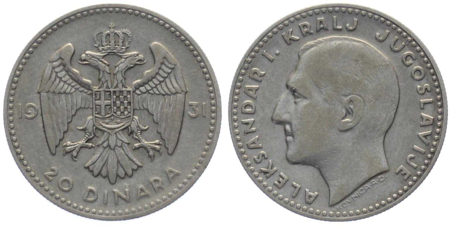 Jugoslawien 20 Denar 1931 - Alexander I.