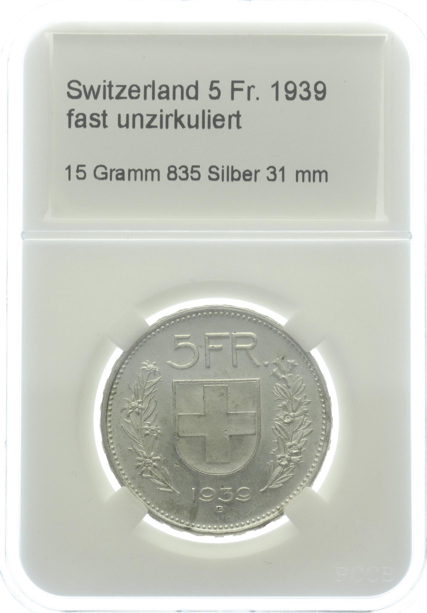 Schweiz 5 Franken 1939 B - fast unzirkuliert