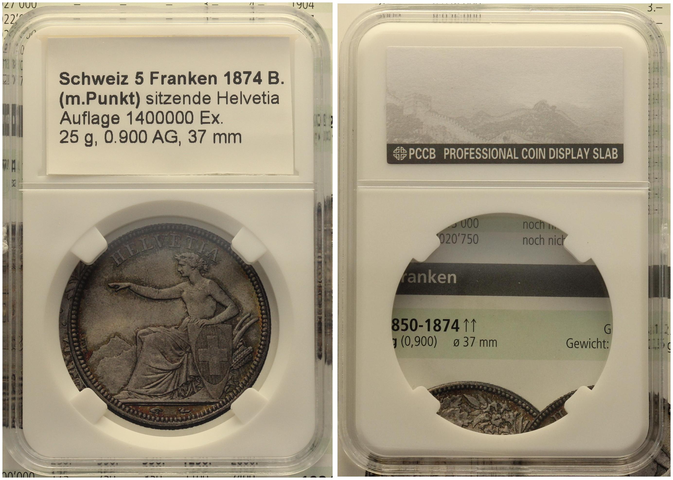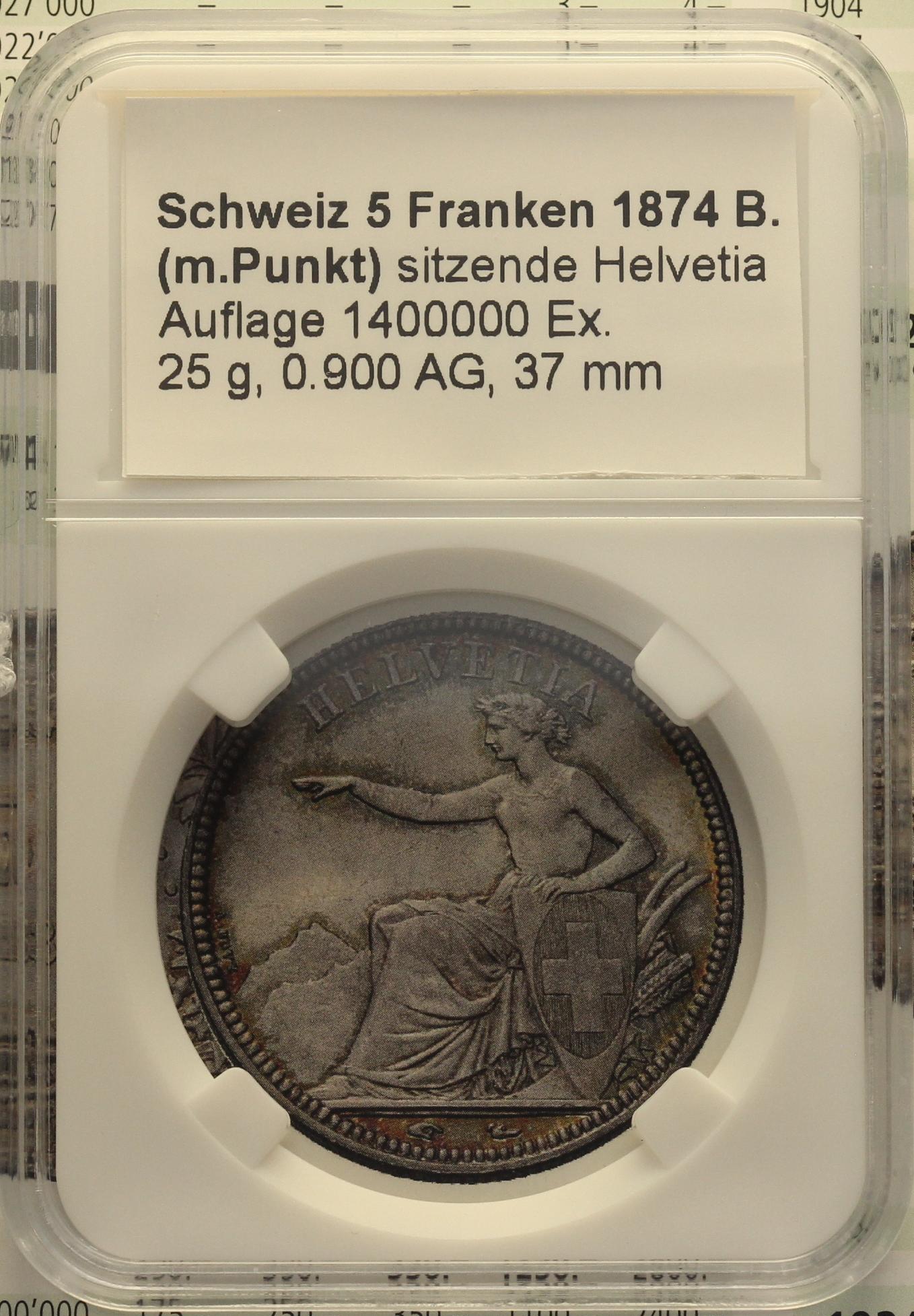 Slab beschriftet für 5 Franken 1874 B.