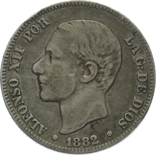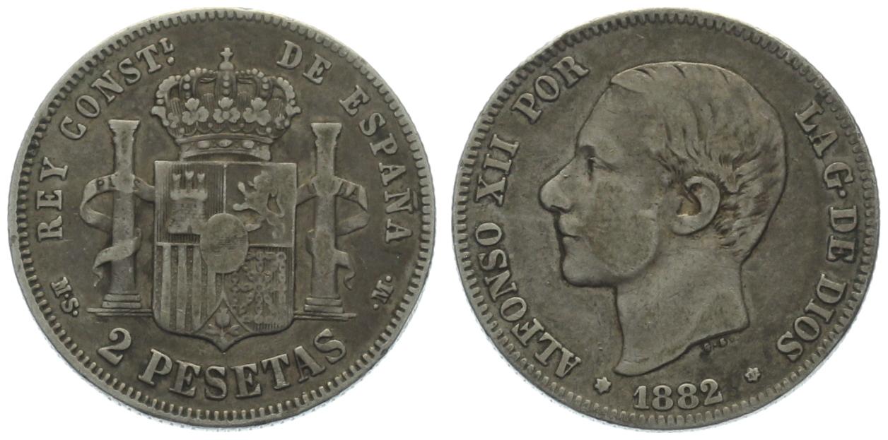 Spanien 2 Pesetas 1882 MS M - Alfonso XII.