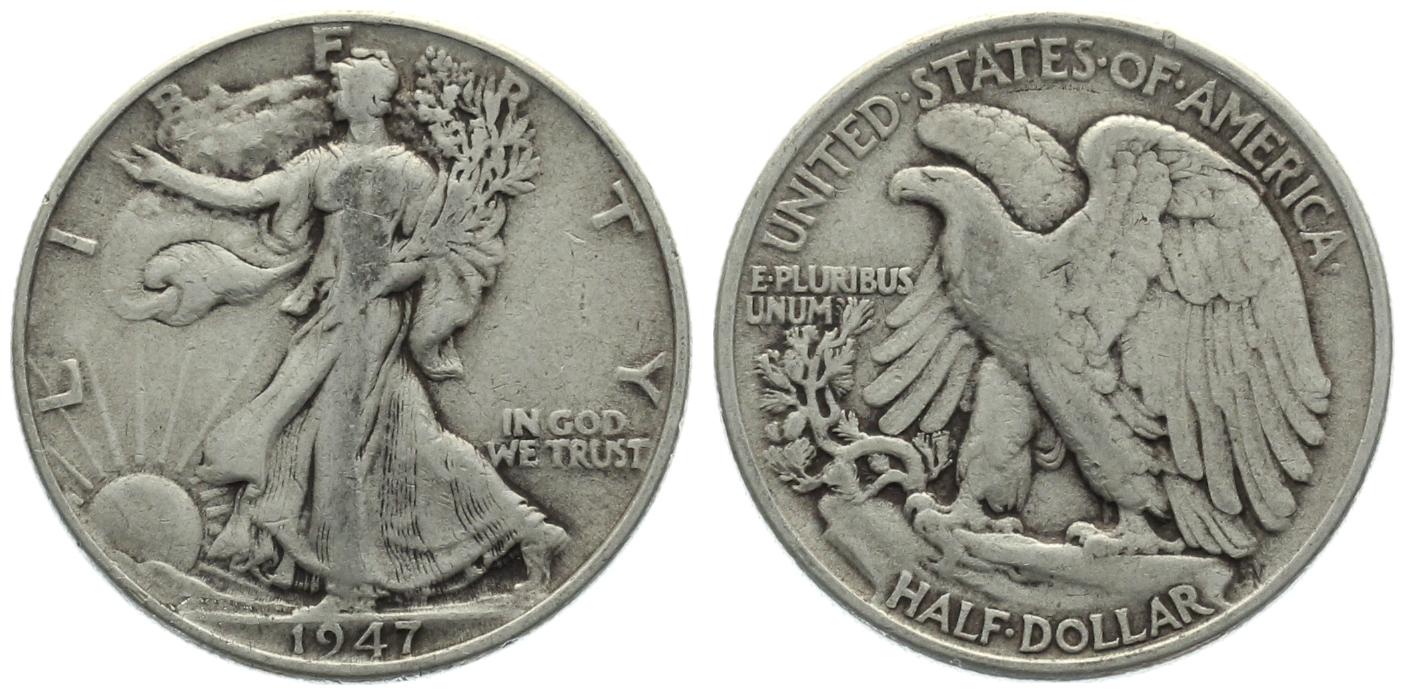 Mobile Preview: USA 1/2 Dollar 1947 o. Mzz. - Walking Liberty