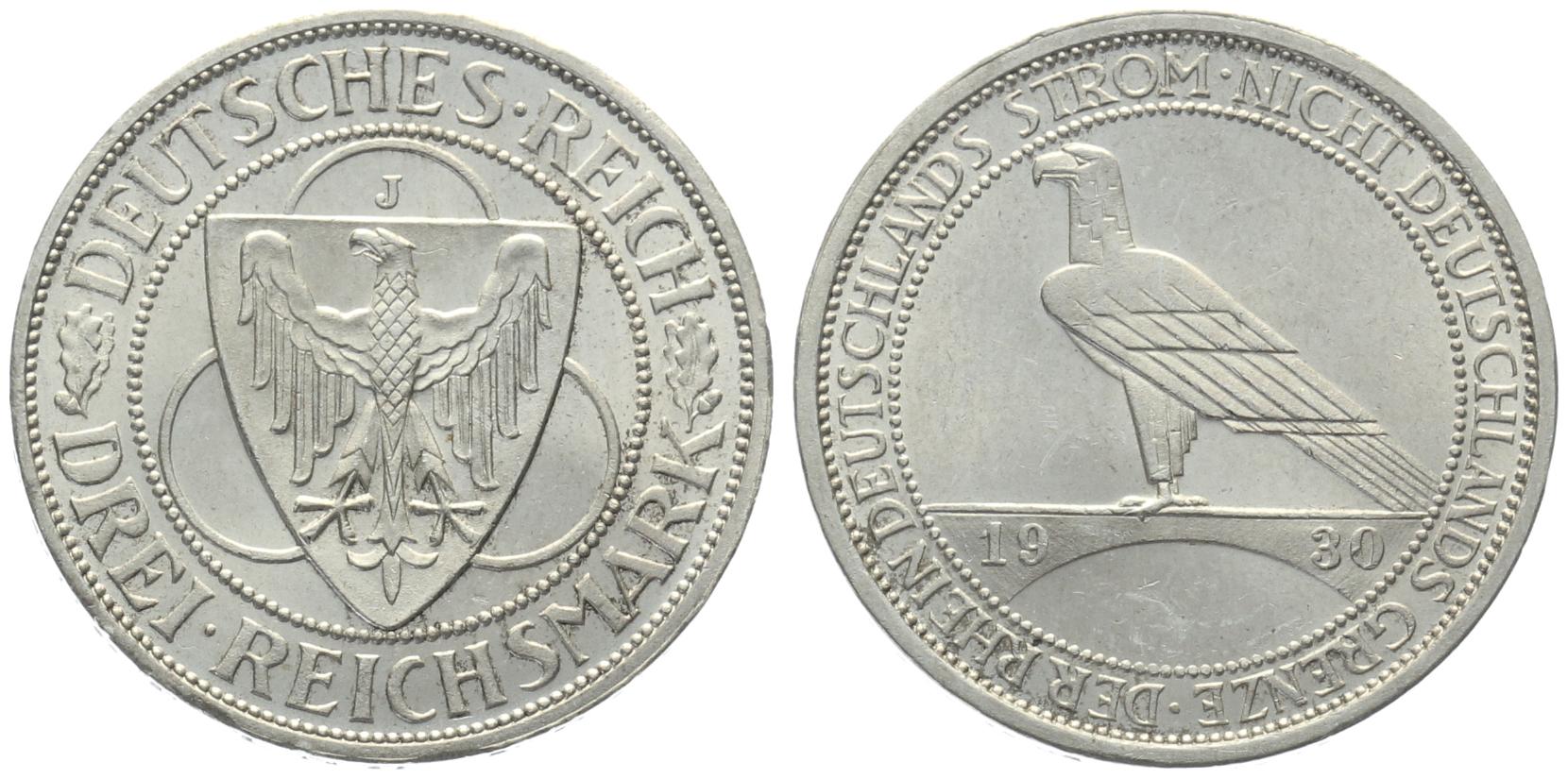 Weimar 3 Reichsmark 1930 J - Rheinlandräumung