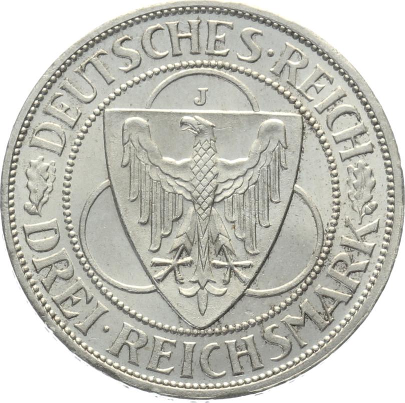 Mobile Preview: Weimar 3 Reichsmark 1930 J - Rheinlandräumung